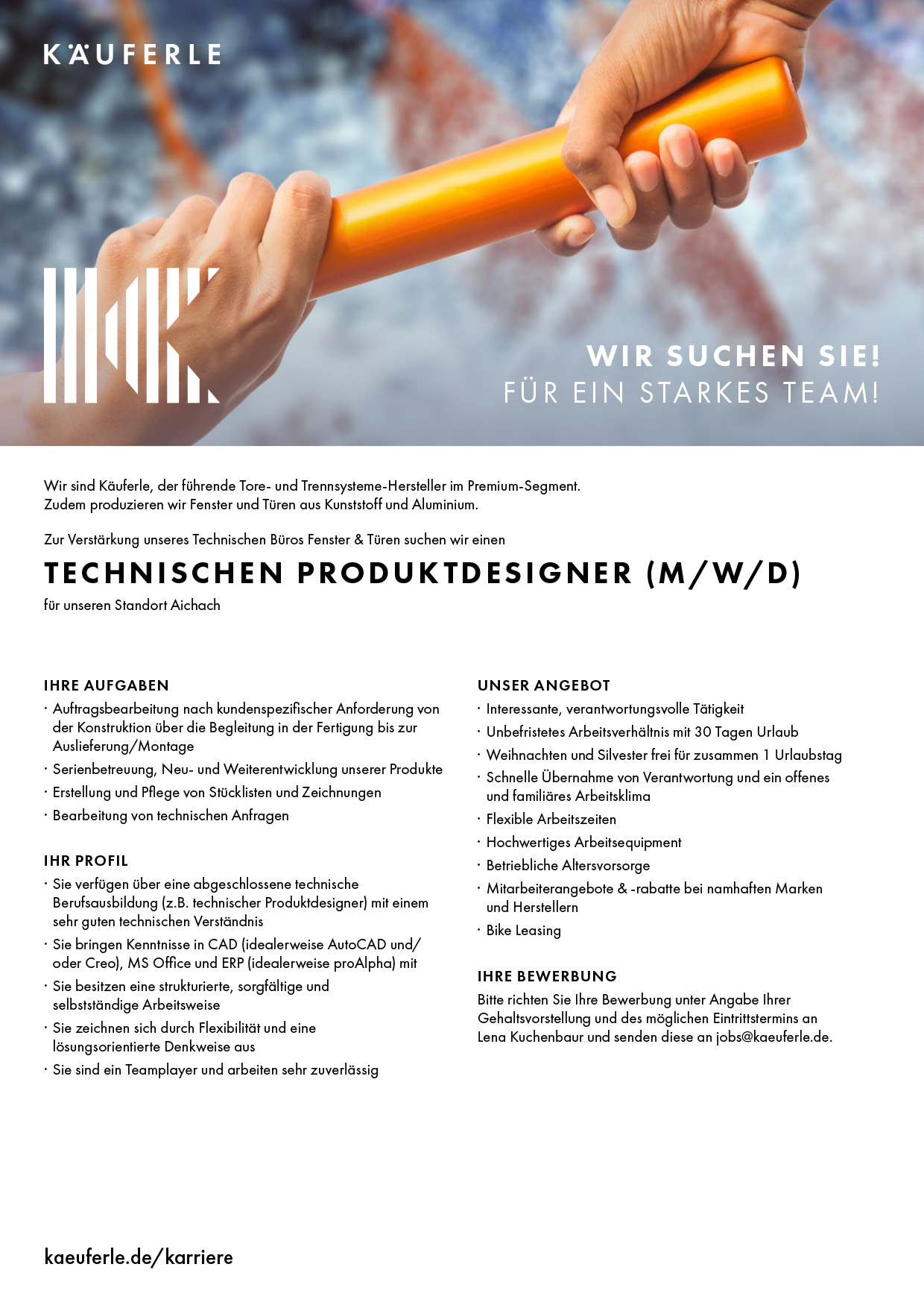 "What I particularly liked here at Käuferle right from the start was the creative work and the wide range of design options. As part of an interdisciplinary team, we design and realise a wide variety of doors in close consultation with clients and architects. This results in customised, individual design solutions that are not only durable, but are usually actually used for a long time and are therefore sustainable. That gives me a good feeling."
